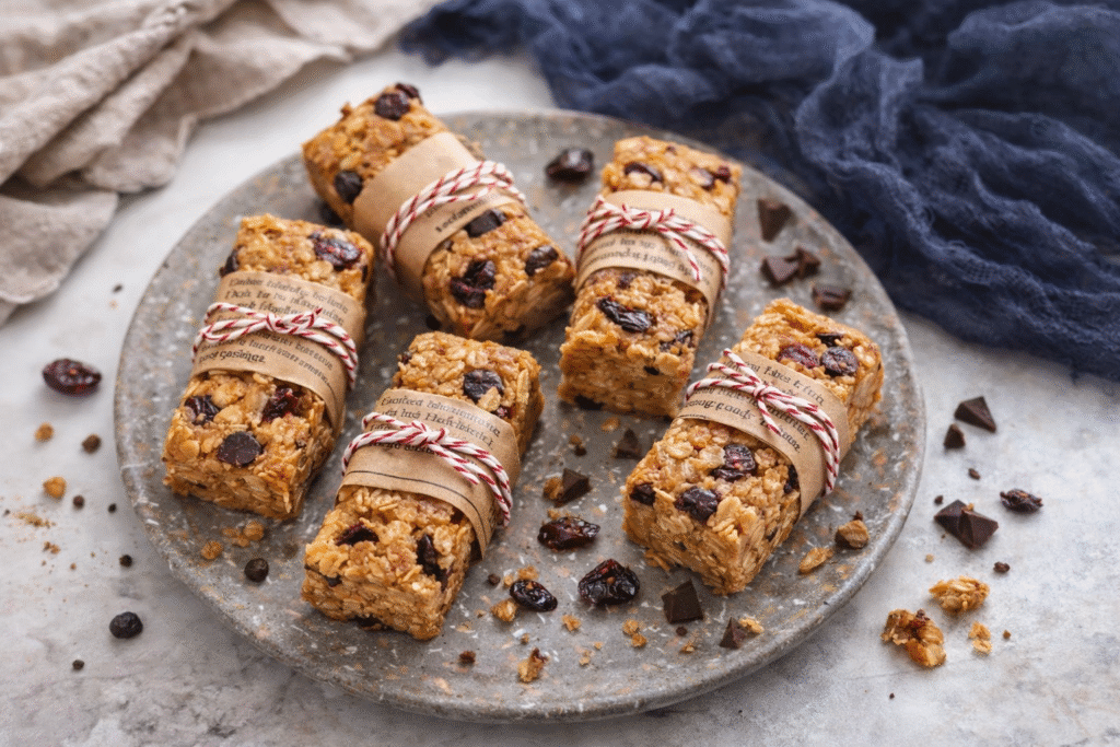 Deze havermoutrepen zijn perfect voor een drukke werkdag. Rijk aan vezels door de havermout, geven ze langdurige energie en zijn makkelijk mee te nemen. Variëren met gedroogd fruit, chocolade of noten maakt ze extra leuk. Een smakelijke snack die goed vult.